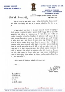 इस संबंध में केंद्रीय सामाजिक न्याय एवं अधिकारिता राज्य मंत्री माननीय रामदास आठवले जी ने केंद्रीय रेल मंत्री माननीय अश्विनी वैष्णव जी को पत्र लिखकर आवश्यक कार्रवाई करने का अनुरोध किया है।