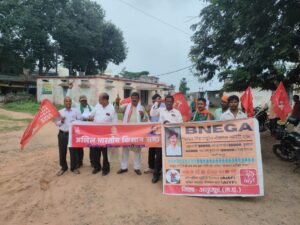पुलिस और प्रशासन द्वारा समर्थित सांप्रदायिक हिंसा को रोका जाए एवं हर खेत को पानी हर हाथ को काम के तहत भगत सिंह रोजगार गारंटी एक्ट (बनेगा) जिसके तहत अशिक्षित को 35 000 अर्थशिक्षित को 40000 शिक्षित को 45000 एवं उच्च शिक्षित को 60000 प्रतिमा वेतन की गारंटी कानून की मांग रोजगार लागू न होने पर रोजगार प्रतीक्षा भता आधी राशि देय हो, वह काम के घंटे 8 से घटकर 6 घंटे की मांग की कार्यक्रम को संबोधित करते हुए कामरेड संजय राठौर सचिव अखिल भारतीय किसान सभा, का .रामू यादव जिला सचिव सीटू,का. विगेंद्र राठौर अध्यक्ष भारतीय किसान यूनियन, का. दलवीर केवट जिला सचिव किसान सभा रैली को संबोधित एवं ज्ञापन सपा