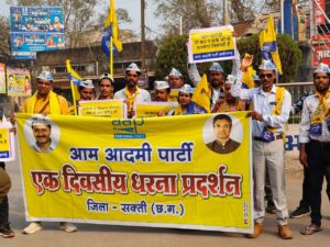 आम आदमी पार्टी छत्तीसगढ़ द्वारा किसानों के साथ हो रहे अन्याय के विरोध में 29 जनवरी 2026 को प्रदेशव्यापी धरना-प्रदर्शन किया गया। इसी कड़ी में सक्ती जिले में कचहरी चौक पर विशाल धरना-प्रदर्शन आयोजित किया गया, जिसमें बड़ी संख्या में किसान एवं पार्टी कार्यकर्ता शामिल हु