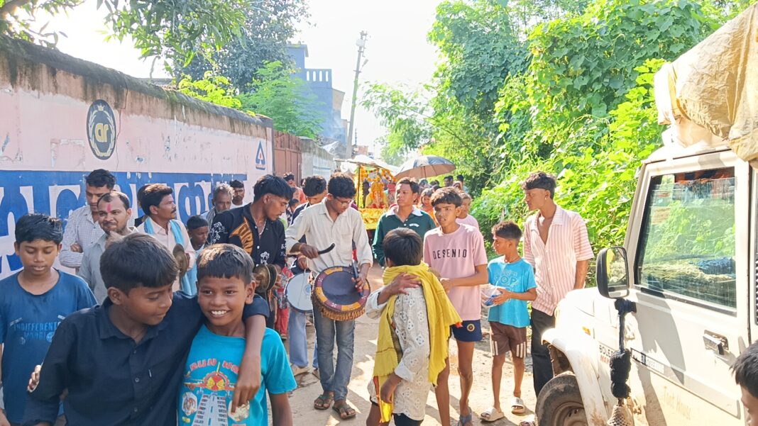 📸 ग्राम पंचायत सेंदुरस के शनिचरी बाजार चौक से निकले गणेश विसर्जन जुलूस में शामिल ग्रामीण, बकताल बड़े तालाब की ओर जाते हुए।