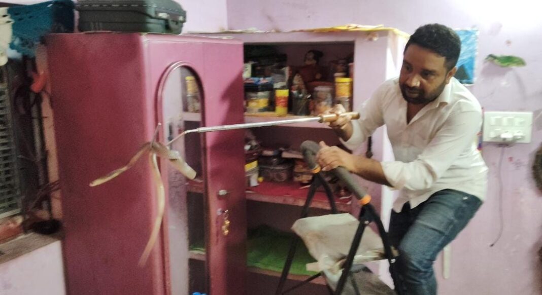 नाग पंचमी के दिन घर के कमरे में आया कोबरा , घर वाले के साथ पड़ोसियों ने विधि विधान से किया पूजा पाठ, जितेंद्र सारथी ने किया रेस्क्यु