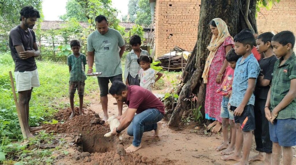मृत खरगोश का नन्हे बच्चों के साथ बड़ों ने घर के बाडी में गड्ढा खोद कर पूरे विधि विधान से अंतिम संस्कार किया ,घर वालों ने बताया खरगोश के साथ बच्चे हमेशा खेलते थे, अपने बच्चे समान रखते थे, इसलिए बच्चे को ज्यादा दुखी हुए हैं ।
