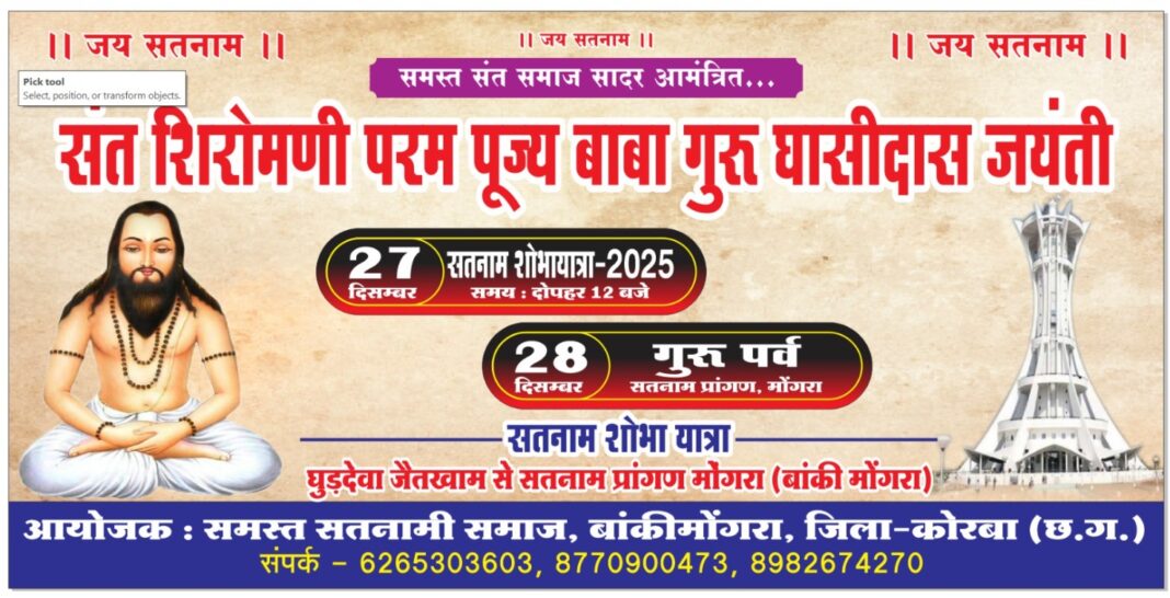 बाँकी मोंगरा में संत शिरोमणि बाबा गुरु घासीदास जी की जंयती भव्य रूप से हर्षोल्लास के साथ मनाया जाएगा