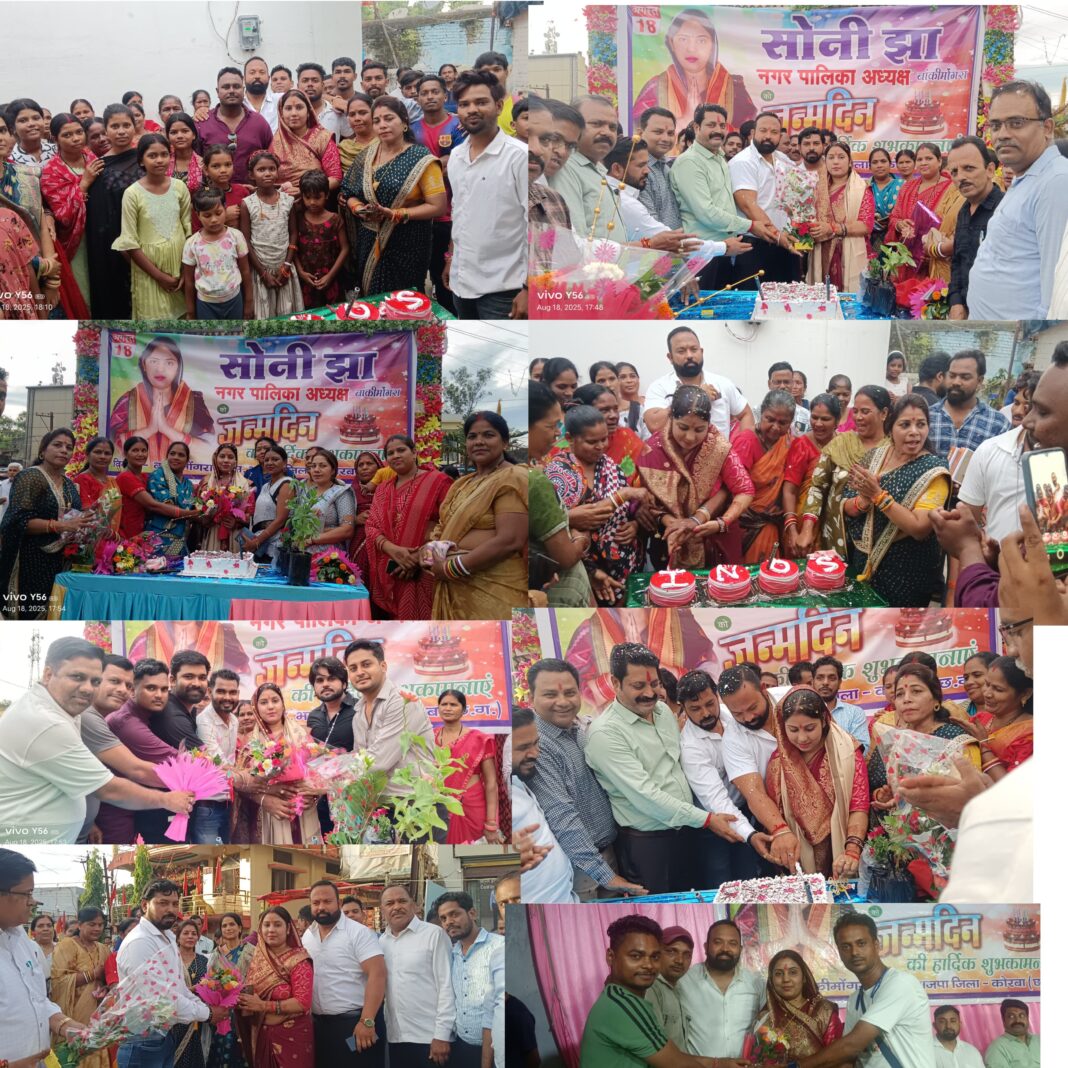 सर्व प्रथम पालिका अध्यक्ष श्रीमती सोनी विकास झा अपने पालिका कार्यालय पहुंचे जहां पालिका के समस्त अधिकारी व स्टाफ के द्वारा पुष्प गुच्छ भेंटकर स्वागत व जन्मदिन की शुभकामनाएं दिये । जिसके पश्चात श्रीमती झा जी का जन्मदिन पर केक काटकर बधाई संदेश दिये । भारतीय जनता पार्टी बांकीमोंगरा मंडल के द्वारा व मंडल अध्यक्ष उदय शर्मा के नेतृत्व में अपने भाजपा पदाधिकारियों व कार्यकर्ताओं के साथ मिलकर श्रीमती सोनी विकास झा जी का जन्मदिन मनाया गया , इससे पहले श्रीमती झा ने मां सिद्धिदात्री माता व बंजरग बली जी का पूजा अर्चना किया और अपने क्षेत्र के जनताओं के लिए माता रानी व श्री हनुमान जी से आशीर्वाद मांगा व क्षेत्र में खुशहाली, सुख समृध्दि के लिए आशीर्वाद प्राप्त किया ।