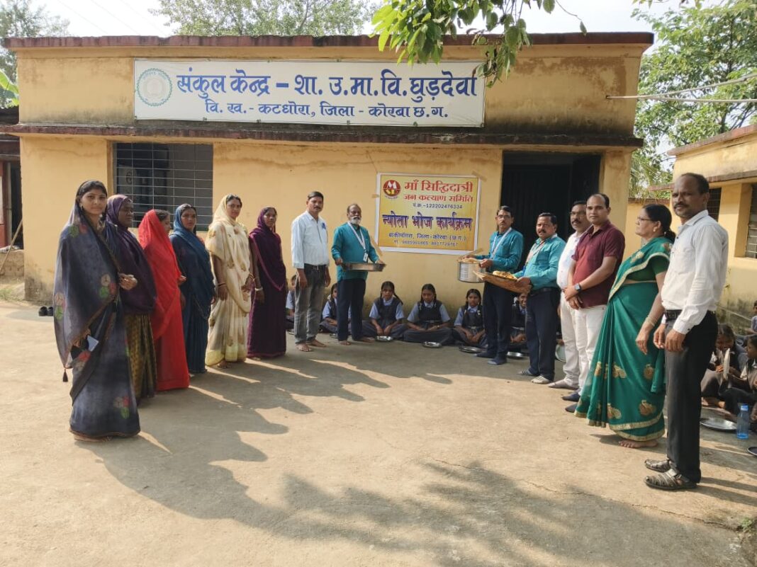 मां सिद्धिदात्री जन कल्याण समिति बांकी मोंगरा द्वारा माध्यमिक शाला घुड़देवा में न्योता भोज एवं वृक्षारोपण का कार्यक्रम रखा गया