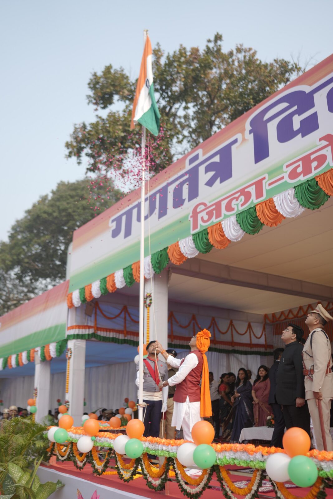 कोरबा -: 77वें गणतंत्र दिवस के अवसर पर सीएसईबी फुटबॉल ग्राउंड में आयोजित गणतंत्र दिवस मुख्य समारोह में राजस्व मंत्री टंक राम वर्मा ने ध्वजारोहण कर परेड की सलामी ली। मुख्यमंत्री के जनता के नाम संदेश का वाचन किया।