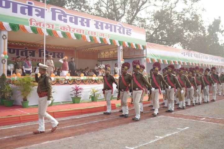 कोरबा-: राजस्व एवं आपदा प्रबंधन, पुनर्वास, उच्च शिक्षा मंत्री छत्तीसगढ़ शासन टंक राम वर्मा के मुख्य आतिथ्य में कोरबा जिला मुख्यालय के सीएसईबी फुटबॉल ग्राउंड में हर्षोल्लास के साथ 77वें गणतंत्र दिवस के जिला स्तरीय समारोह का आयोजन हुआ। वर्मा ने ध्वजारोहण कर परेड की सलामी ली। जिला स्तरीय समारोह में इस वर्ष राष्ट्रगान के साथ-साथ राष्ट्रीय गीत का भी सस्वर गायन किया गया। मुख्य अतिथि द्वारा प्रदेश के मुख्यमंत्री विष्णुदेव साय का छत्तीसगढ़ वासियों के नाम संदेश का वाचन किया गया। अनेकता में एकता के प्रतीक गुब्बारे आकाश में छोड़े गये। गणतंत्र दिवस के अवसर पर जिले के शहीदों के परिजनों को शॉल, श्रीफल भेंट कर विशेष सम्मान किया गया और वीर सेनानियों की शहादत के प्रति कृतज्ञता व्यक्त की गई।