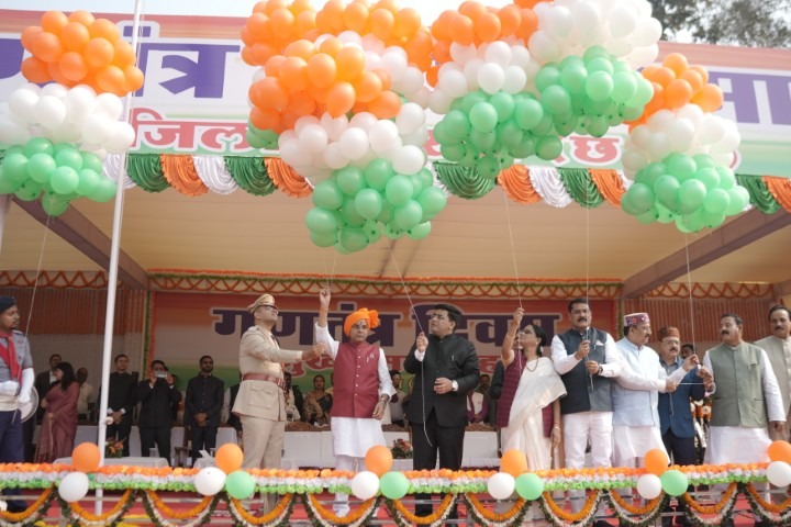 जिला स्तरीय समारोह में राजस्व मंत्री टंक राम वर्मा ने किया ध्वजारोहण