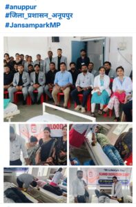 रक्तदान शिविर में जिला चिकित्सालय अनूपपुर के लैब टैक्नीशियन राठौर, भाईलाल रामलाल पटेल, नर्सिंग ऑफीसर पिन्की चौधरी, प्रियंका बसेने तथा सामुदायिक स्वास्थ्य केन्द्र जैतहरी के लैब टेक्निशियन रामचि कोल