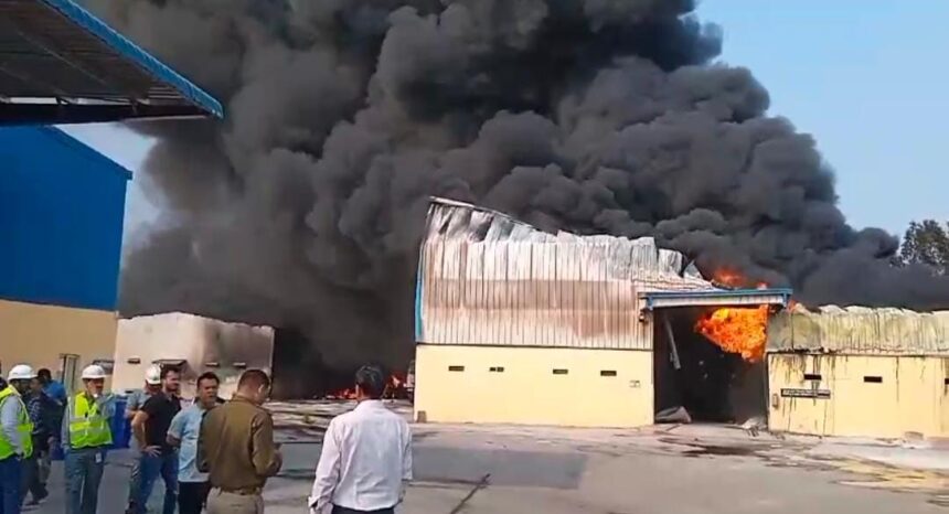 BREAKING: पेंट फैक्ट्री में लगी भीषण आग, रुक-रुक कर हो रहे ब्लास्ट