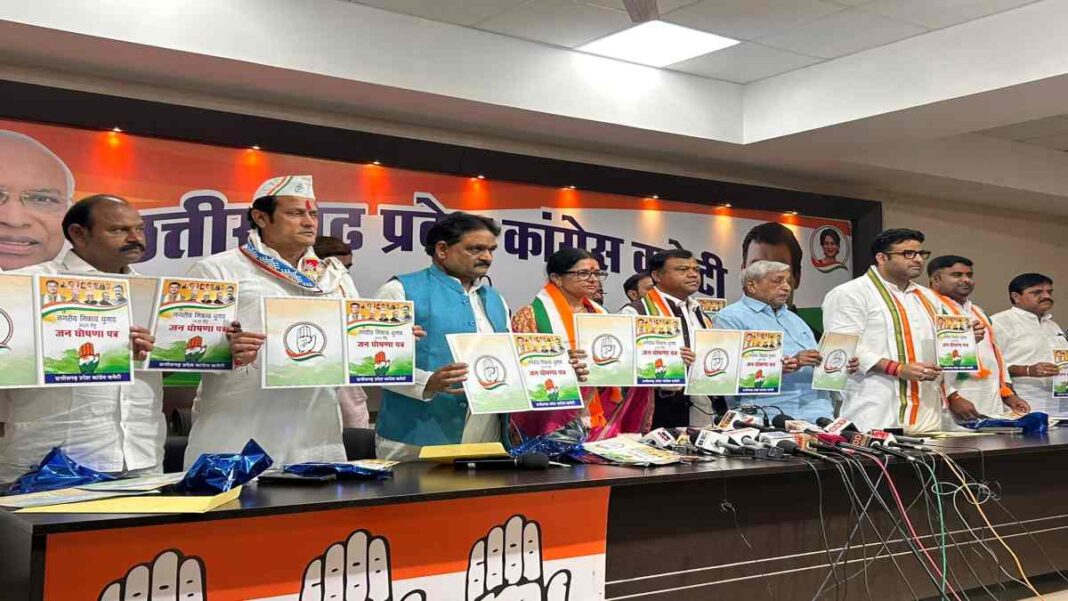 रायपुर. नगरीय निकाय चुनाव के लिए कांग्रेस ने आज राजीव भवन रायपुर में घोषणा पत्र जारी किया, जिसका नाम “जन घोषणा पत्र” दिया गया है. कार्यक्रम में प्रदेश अध्यक्ष दीपक बैज, घोषणा पत्र समिति के अध्यक्ष सत्यनारायण शर्मा, महापौर प्रत्याशी दीप्ति दुबे, पूर्व विधायक विकास उपाध्याय, प्रमोद दुबे, युवा कांग्रेस के प्रदेश अध्यक्ष आकाश शर्मा सहित कई वरिष्ठ नेता मौजूद रहेंगे.