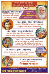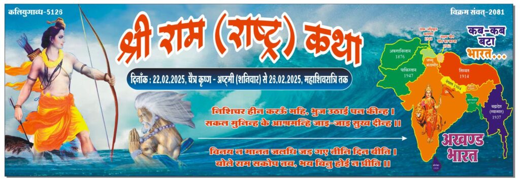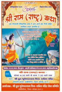 कोरबा/शुभ संकेत: विगत वर्ष की भांति इस वर्ष भी श्री ध्रुव भूतेश्वरनाथ शिव-शक्ति मंदिर सेवा समिति बांकीमोंगरा द्वारा श्रीराम (राष्ट्र) कथा का आयोजन सोमवारी बाजार स्थित श्री ध्रुव भूतेश्वरनाथ शिव-शक्ति मंदिर बांकीमोंगरा में किया गया है। कथा का शुभारंभ 22/02/2025 दिन शनिवार को भव्य कलश यात्रा के साथ होगा तथा कथा का समापन 26/02/2025 दिन बुधवार को महाशिवरात्रि के सुअवसर पर विशाल भोग भंडारा के साथ होगा।